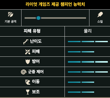 - 공격력64 (+3.5 레벨 당)
