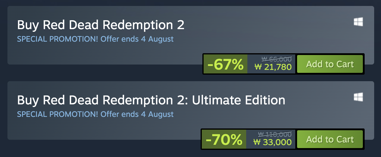 단일 게임은 49,800 원에 판매되고 있으며, 다양한 패키지로 할인된 가격도 만나보실 수 있습니다 !