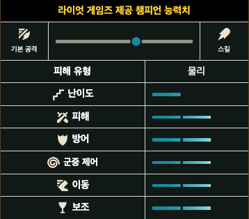 - 공격 속도 0.625 (+2.1% 레벨 당)